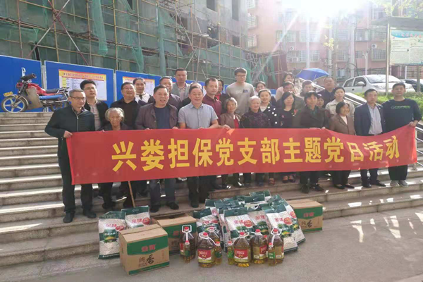 (圖為興婁擔保黨支部一行與鳳陽社區(qū)困難黨員合影)